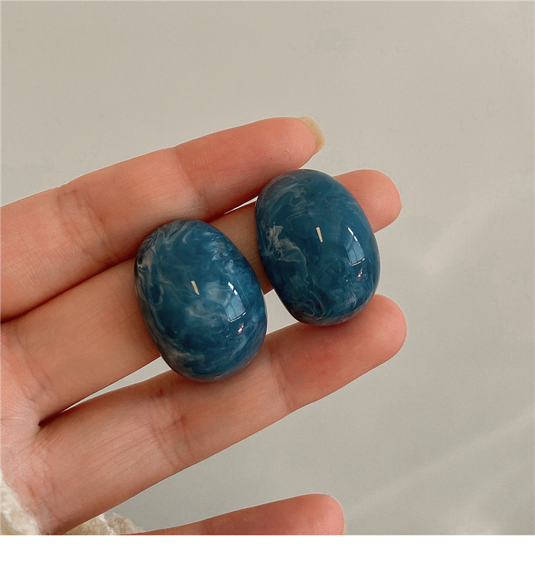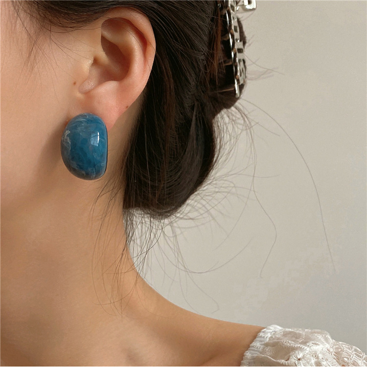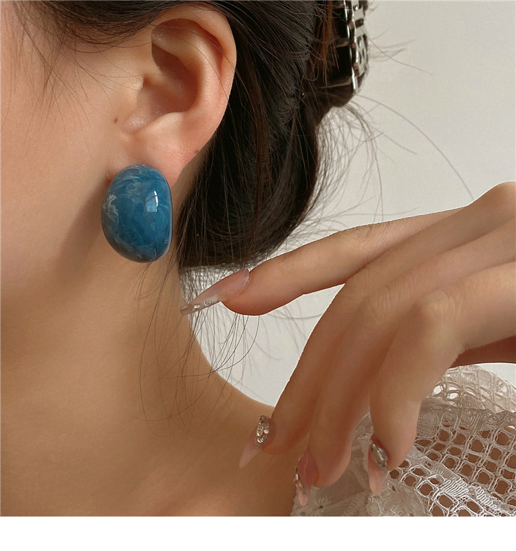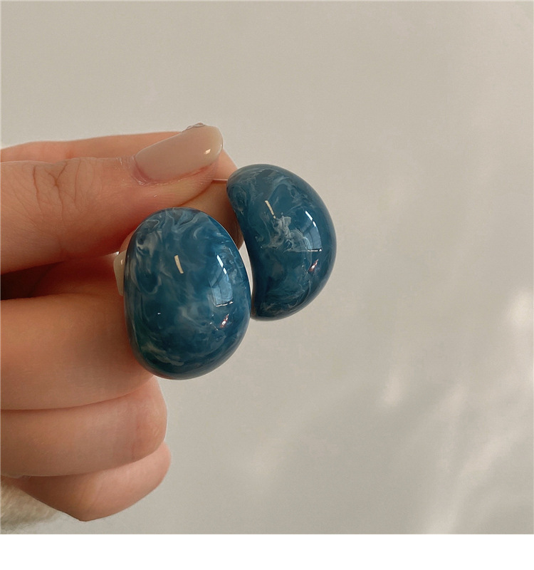 2026年新作レトロ香港風ブルーC型イヤリング、女性向け人気商品、上品でファッショナブルなイヤリング、高級感のある大振りイヤリング