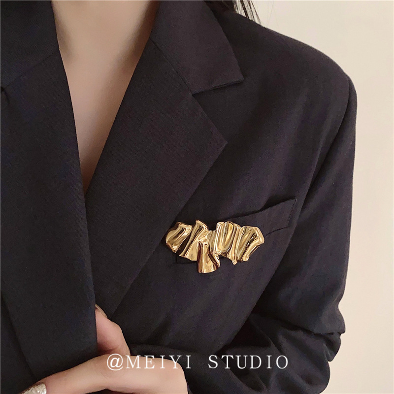 レトロ流行2025年新型金属しわ小衆ブローチ高級冷淡風高街コートスーツアクセサリー