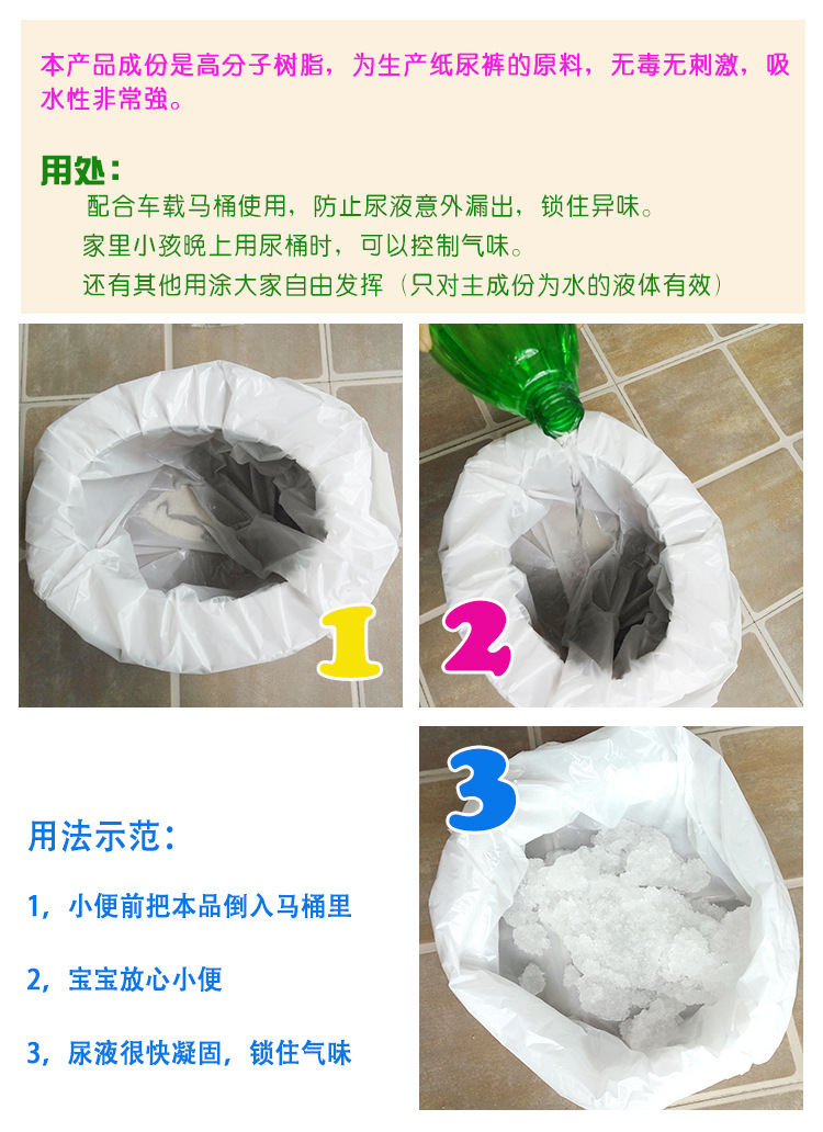 おしっこトイレ車のトイレ硬化尿屋外吸収性尿バッグ消臭液体急速凝固剤外国貿易