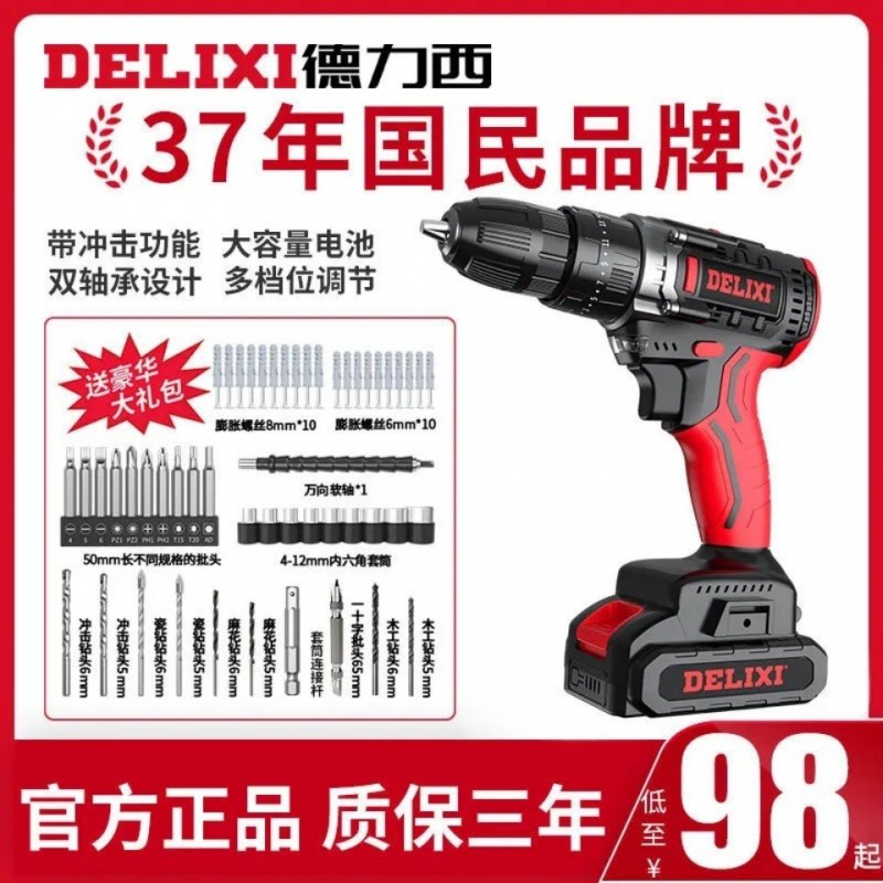 徳力西ブラシレスリチウム電気ドリル充電式家庭用多機能手動ドリル衝撃ピストルドリル電動工具
