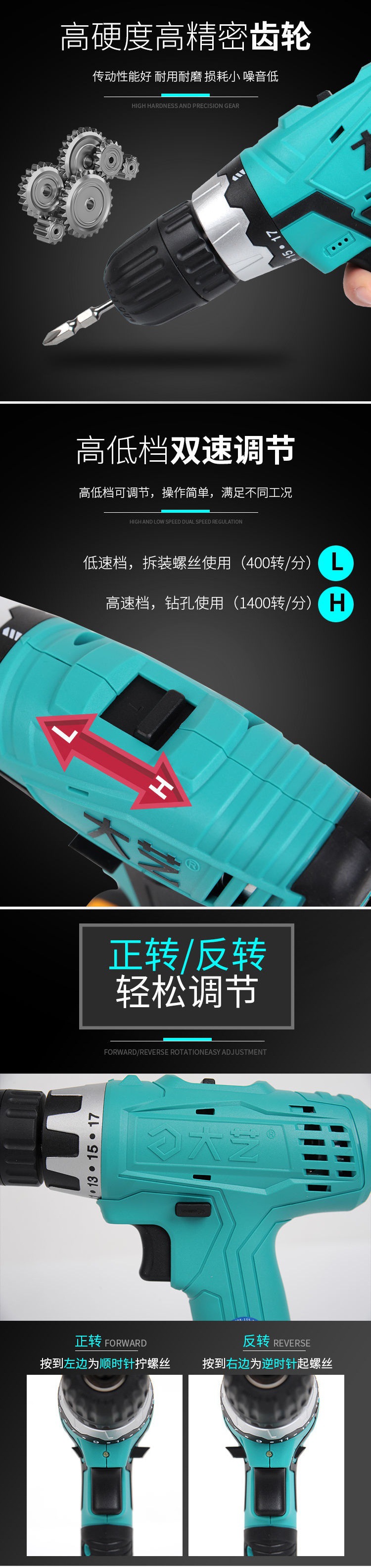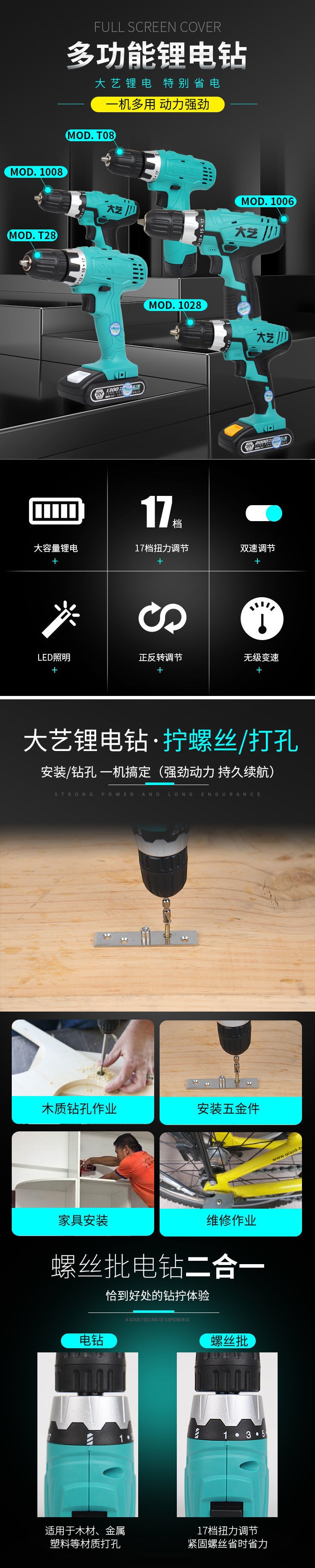 大芸手電気ドリルリチウム電気ドリル大出力12v 16v 20v充電ドリル1028/1008電動ドリル
