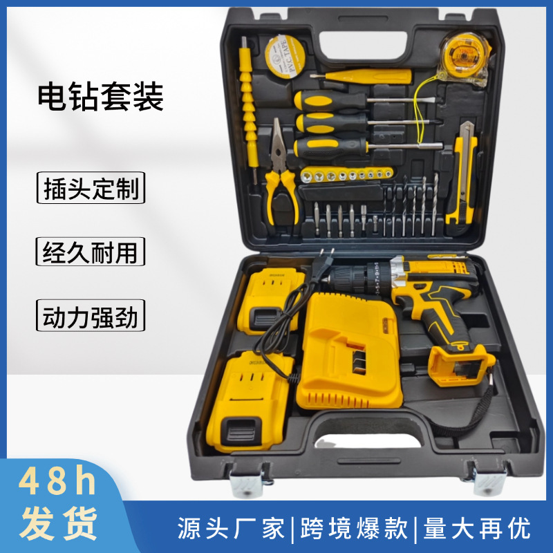 出口爆品多功能锂电电钻套装动力强悍配件齐全双速冲击锂电电钻