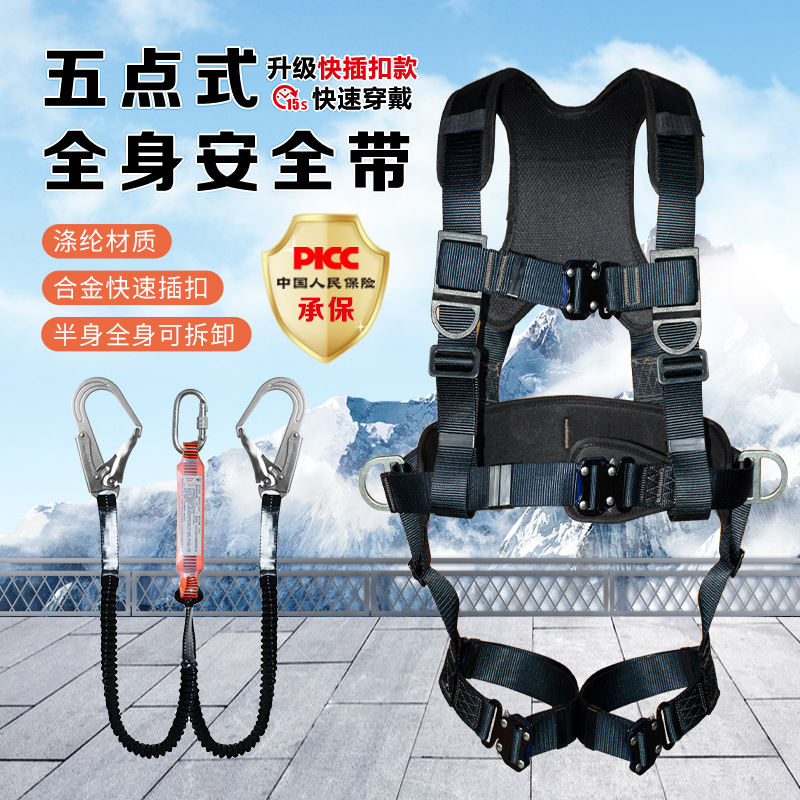 卸売り5時式全身シートベルト高所作業シートベルト5点式落下防止国標双大フック