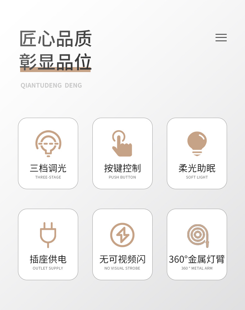 跨境厂家轻奢高级感卧室灯宿舍双头折叠充电台灯学习护眼阅读灯