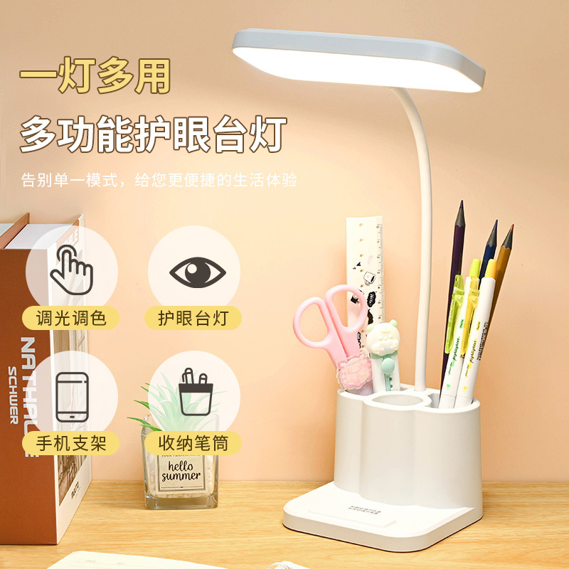 护眼台灯学习写作led小台灯笔筒充插两用多功能充电台灯跨境专供