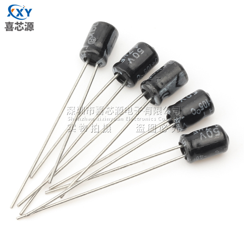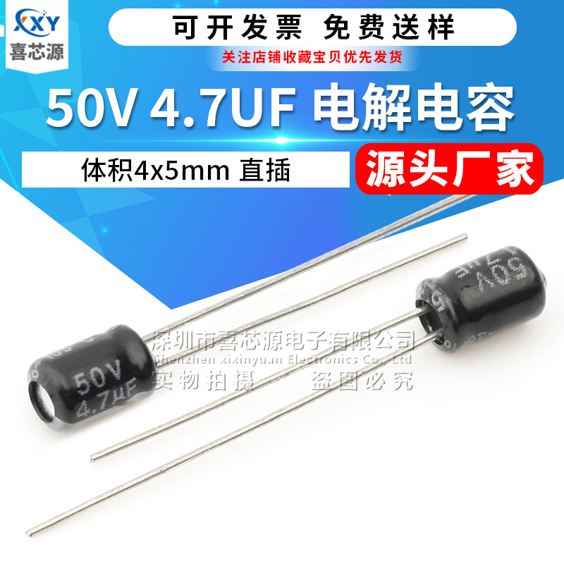 メーカー直供50v4.7uf直挿しアルミ電解コンデンサ体積4x5mm高周波低抵抗電源スイッチ