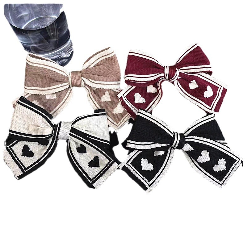 韓国版秋冬新作小香風ニット桃心布芸蝶結びヘアピン部品韓国版アクセサリー卸売り