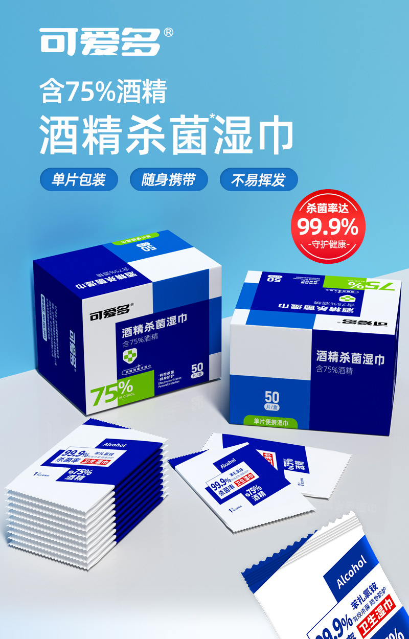 可爱多75%度酒精湿巾抽取式加厚大纸巾家用大包杀菌清洁80片代发