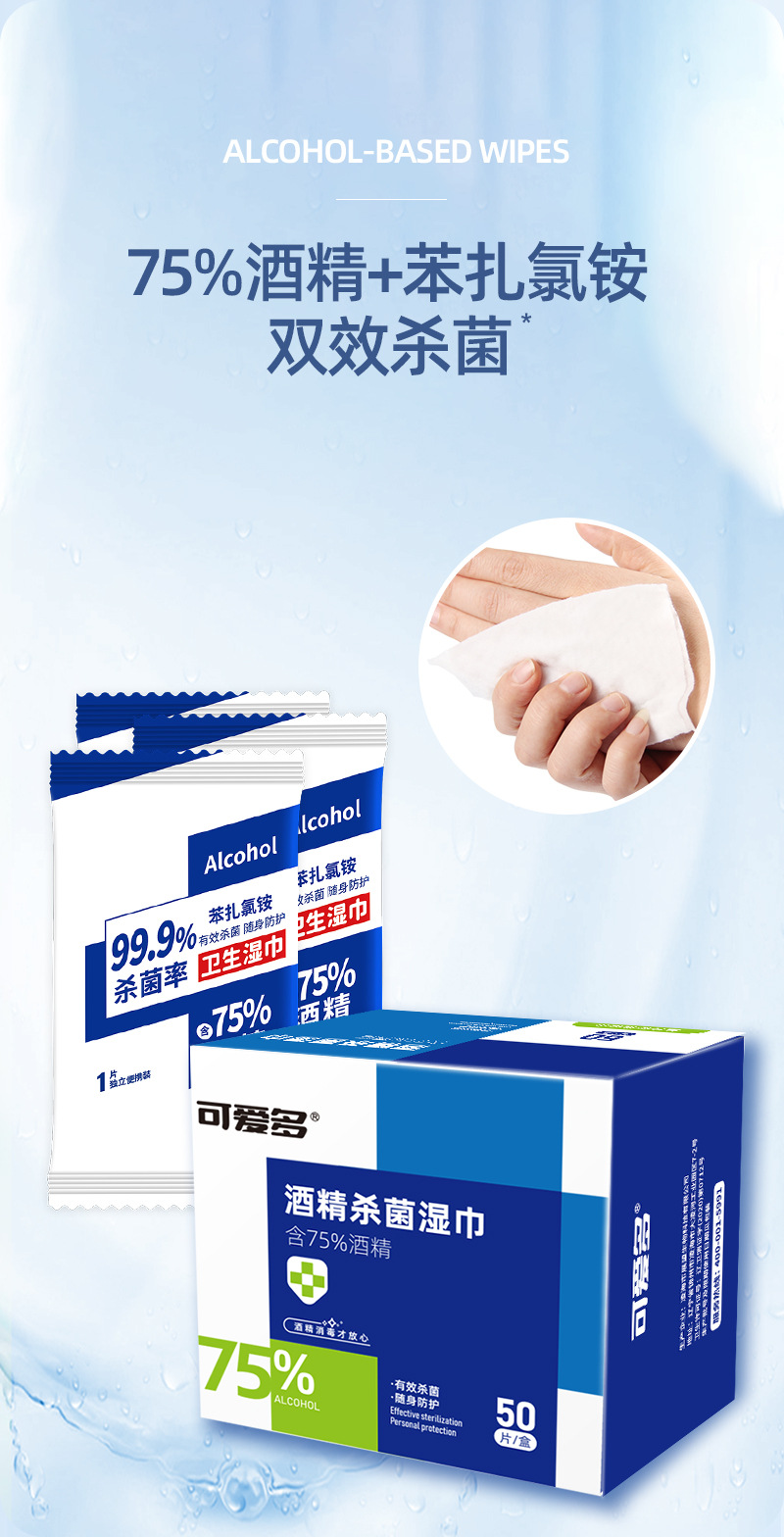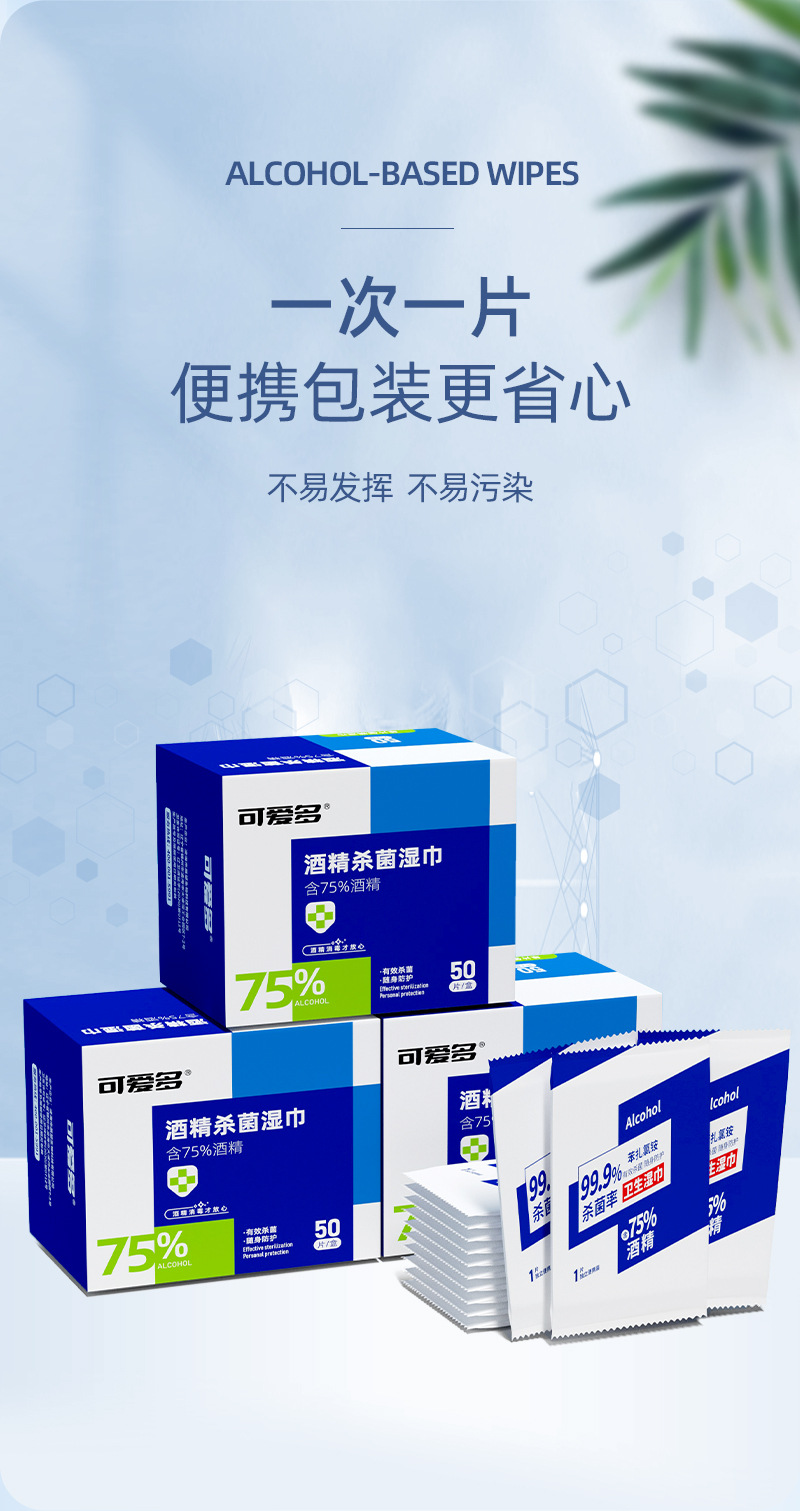 かわいい75% アルコールを含むウェットティッシュ75度ウェットティッシュ50枚の独立した屋外で手を拭く二重効果殺菌携帯