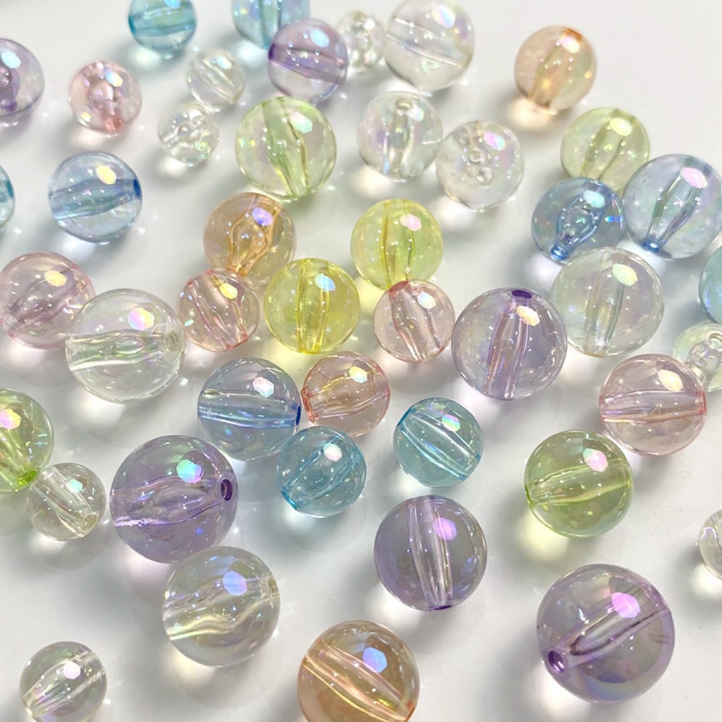 アクリル透明カラー散珠メッキab彩七彩円珠高透ビーズブレスレットアクセサリー材料卸売り