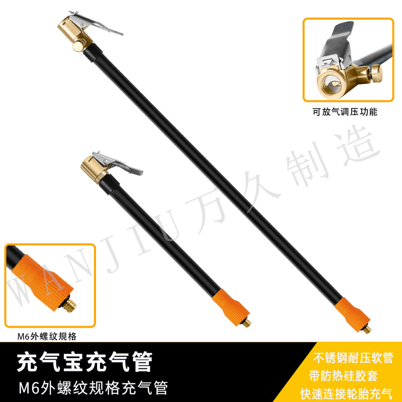 1.采用耐高压橡胶管,三层材料,防冻,不发硬,耐压高达18公斤,同时采用一体成型结构快接SP20通用大接母头,全防护套,耐用度高,一端M16*1.5铜螺帽直接连接货车取气阀。