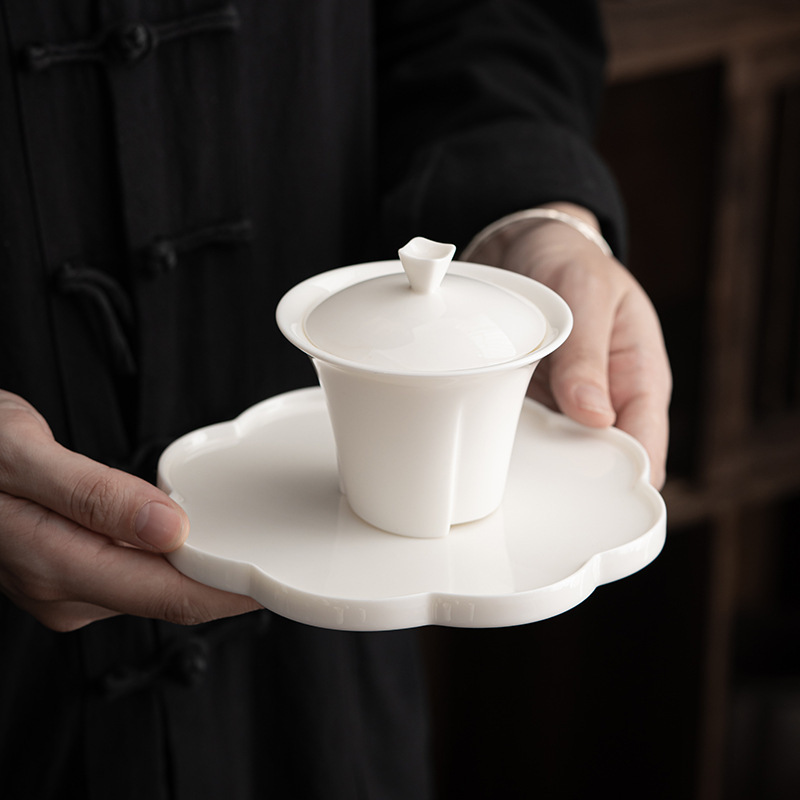 寧萱 風音白蓋碗 德化陶 白磁 薄胎 カンフー茶器 茶碗 蓋付き