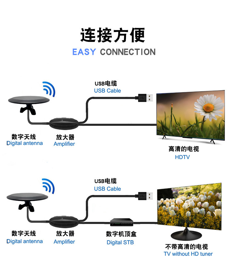 数字电视天线 双放大器 DTMB电视信号天线DVB-T室内电视天线