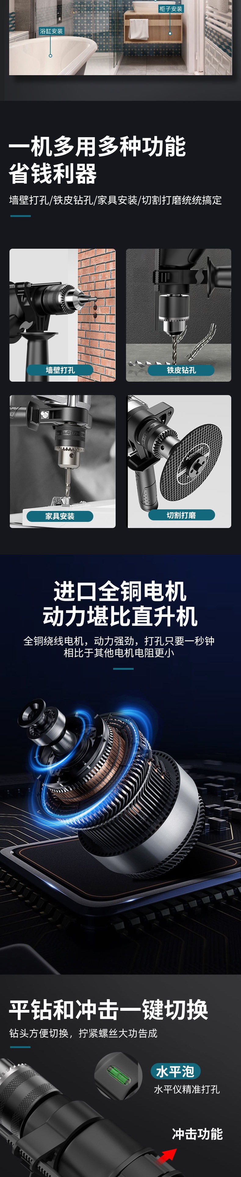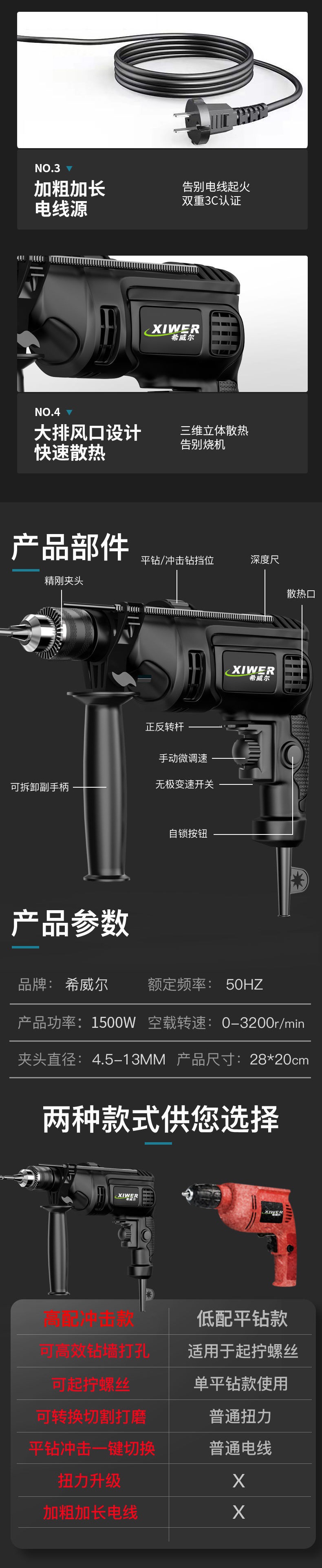 【純銅電気ドリル】インパクトドリル家庭用壁打ち電気ハンドドリル小型穴あけ電動ドライバー