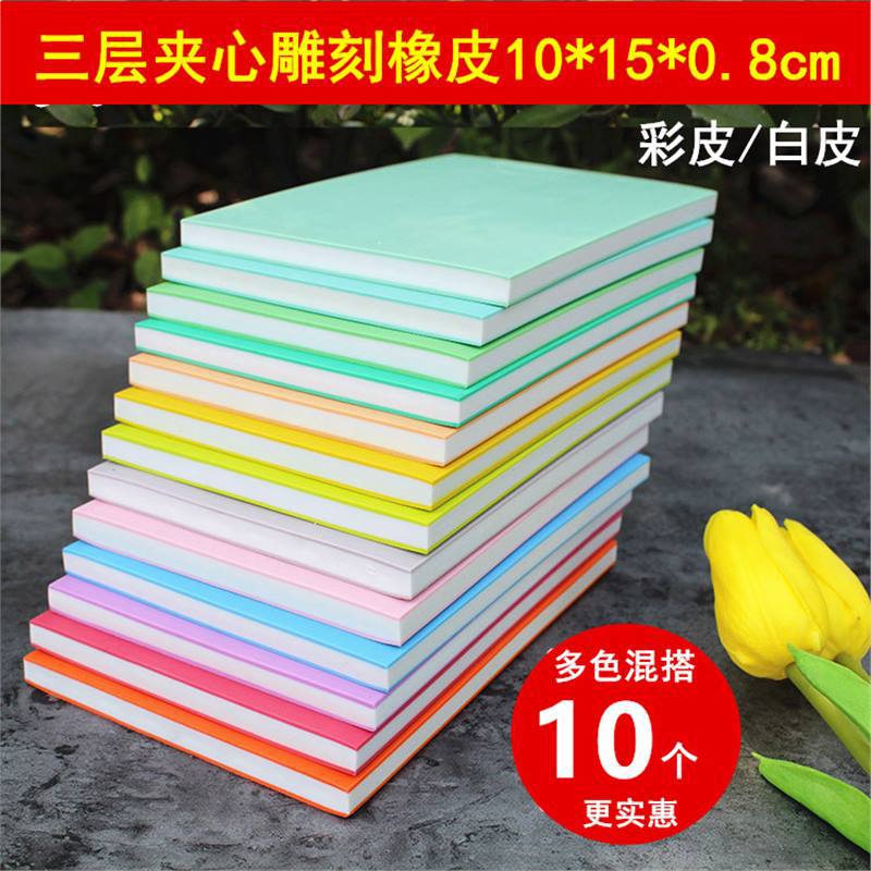可揭橡皮章套装材料雕刻刀手工橡皮砖彩色夹心A4橡皮章10*15