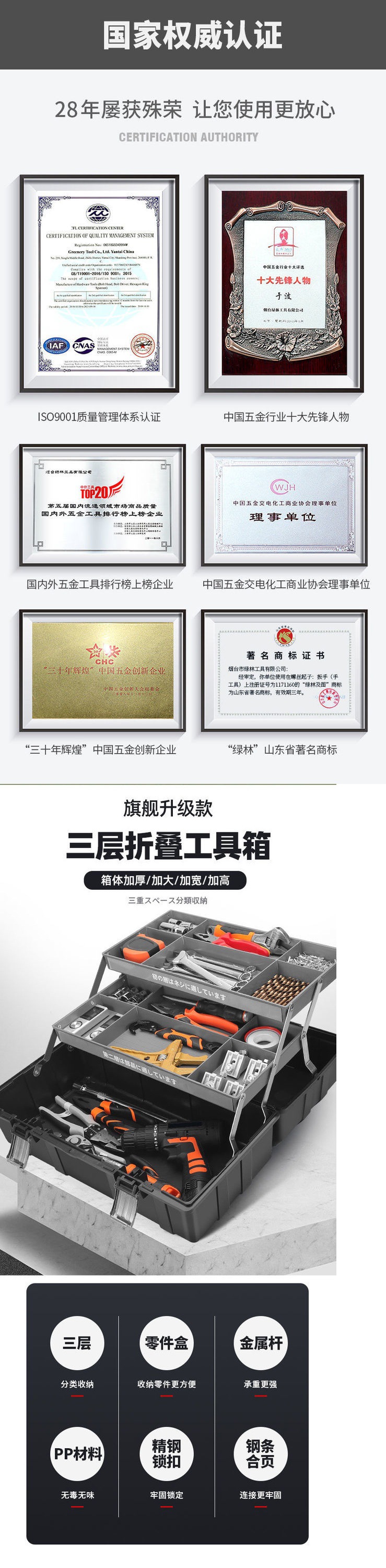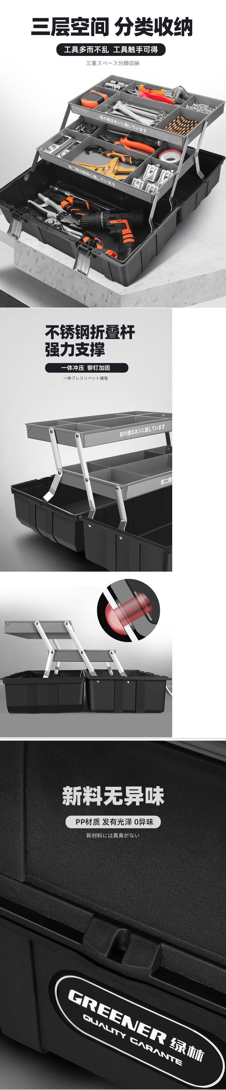 緑林工具箱三層折り畳み収納ボックス多機能家庭用電気技師修理五金工具手持ち式空箱