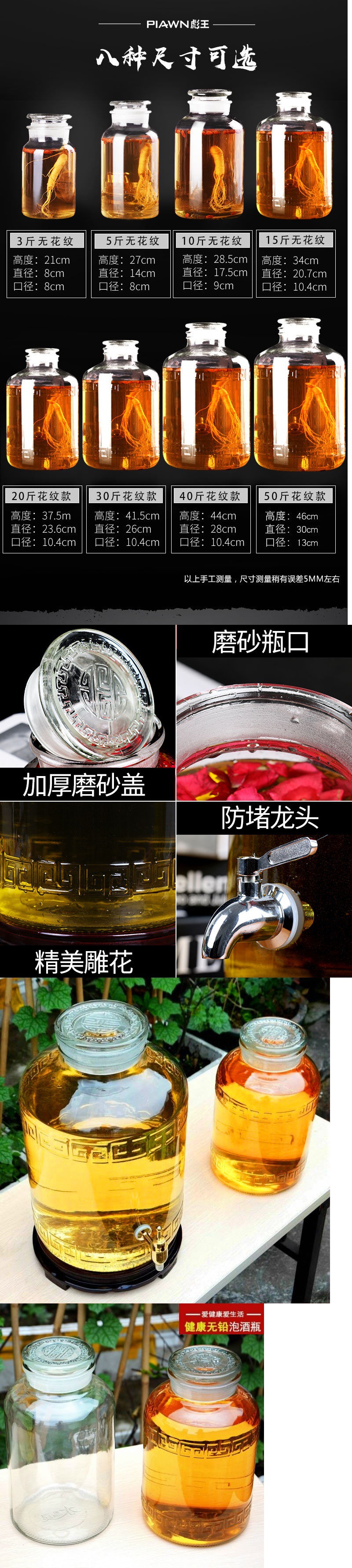 包郵便50斤40斤30斤10斤5斤ガラス泡酒瓶蛇口付き泡酒壇泡酒缶