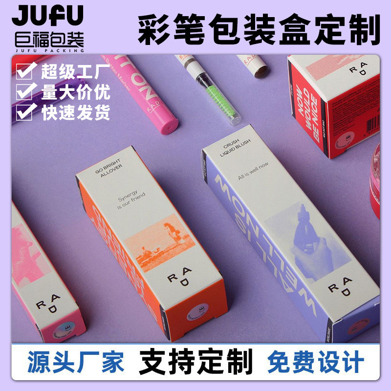 カラーボックスカスタム色鉛筆眉毛ペンシル白ボール紙折りたたみバックルベースボックスマーカーペン包装箱デザイン印刷可能なロゴ