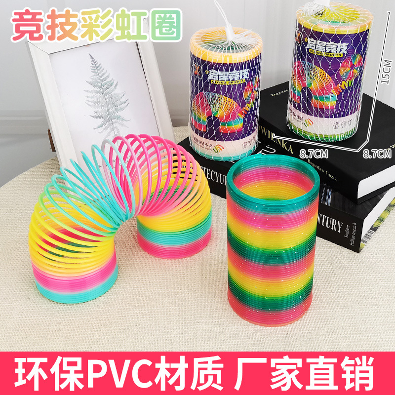 露店の賞品学校の周辺は大きいサイズのおもちゃのスプリングリングの益智の大きいサイズのネットの赤い魔力の虹の輪の卸売りを売ります。