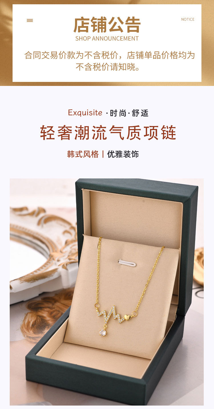 国境を越えた新型愛心電図ペンダント欧米の人気ins風百合マイクロチタン鋼女性ネックレス流行アクセサリー
