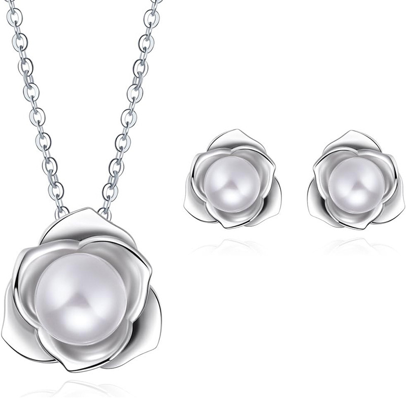 曹適の美しい光沢のあるパールフラワージュエリーセット、エレガントで新鮮で繊細なイヤリング、田園風デイリーネックレス