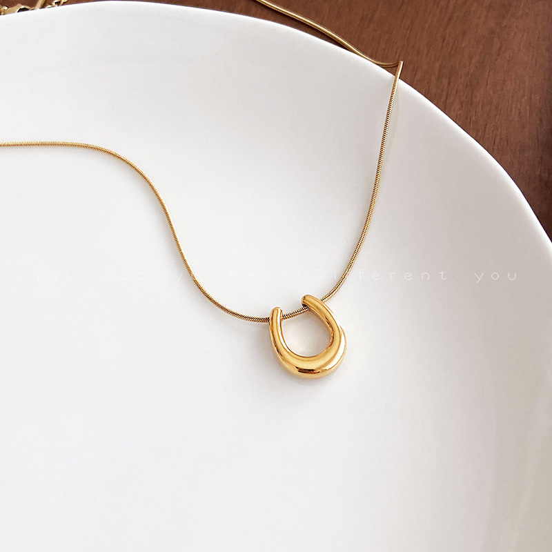 U型リングチタン鋼のネックレス女性韓可水洗い新商品は色あせない金色の気質ファッションに合わせています。