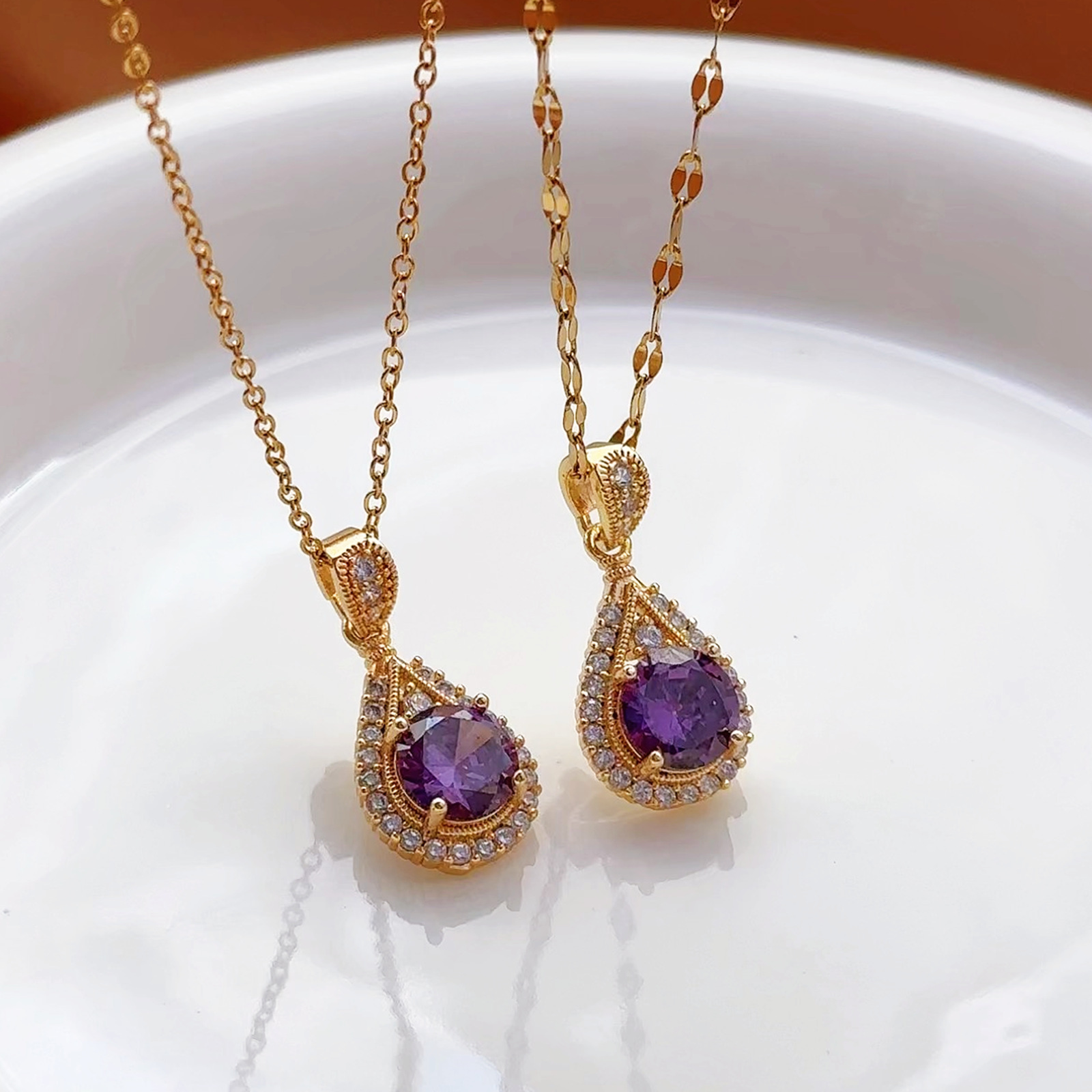 ウォータードロップチタン鋼ネックレスレディースアメジストハイエンドファッションOL鎖骨チェーンシンプルなペンダントジュエリーライトラグジュアリーハイエンド