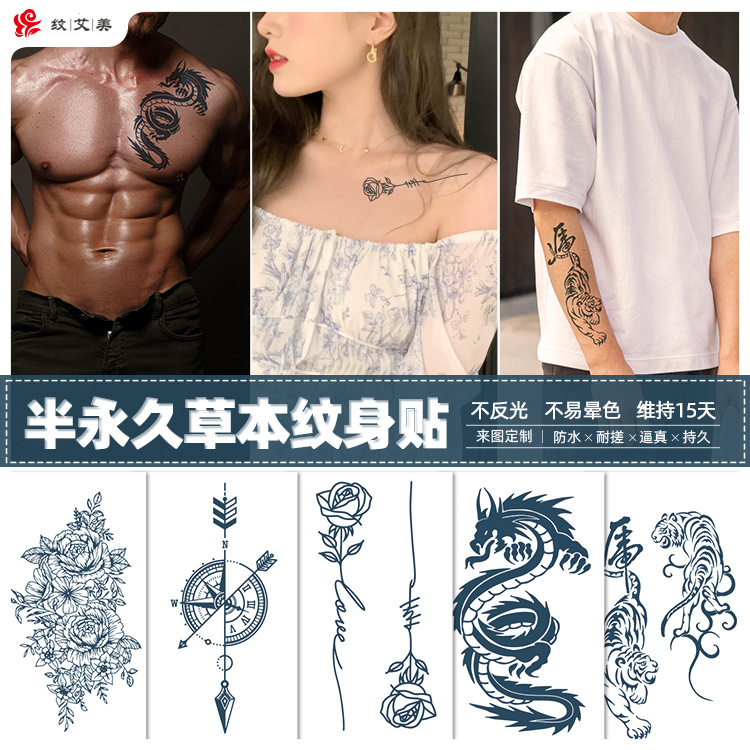 メーカー現物卸売り草本ジュース防水男女胸半甲骨シミュレーション刺青草本刺青シールクロスボーダー