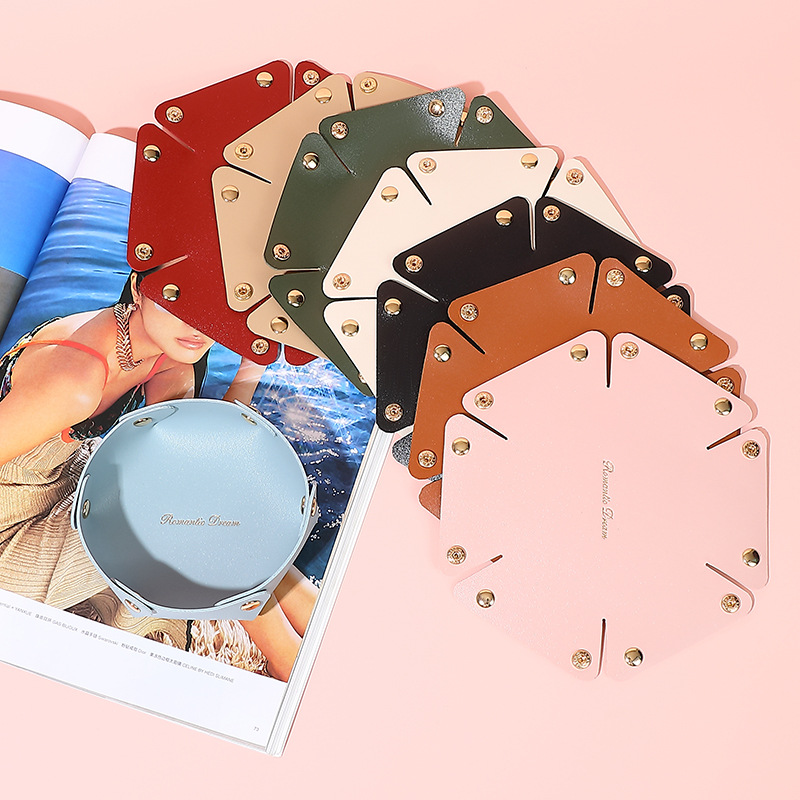 这款设计感十足的桌面收纳盒,是INS热门款式 采用PU皮革材质,小巧精致,9色可选,做工精细平整 可收纳化妆品,首饰,钥匙,遥控板等各类小物,是收纳亦是装饰,为平淡的日常家居生活增添一道色彩