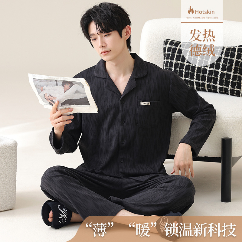 徳絨毛4x l-7 xl保温秋冬男性パジャマ長袖デブ加肥プラスサイズセットカーディガン家庭