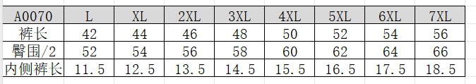 サイズ L,XL,2XL,3XL,4XL,5XL,6XL,7XL