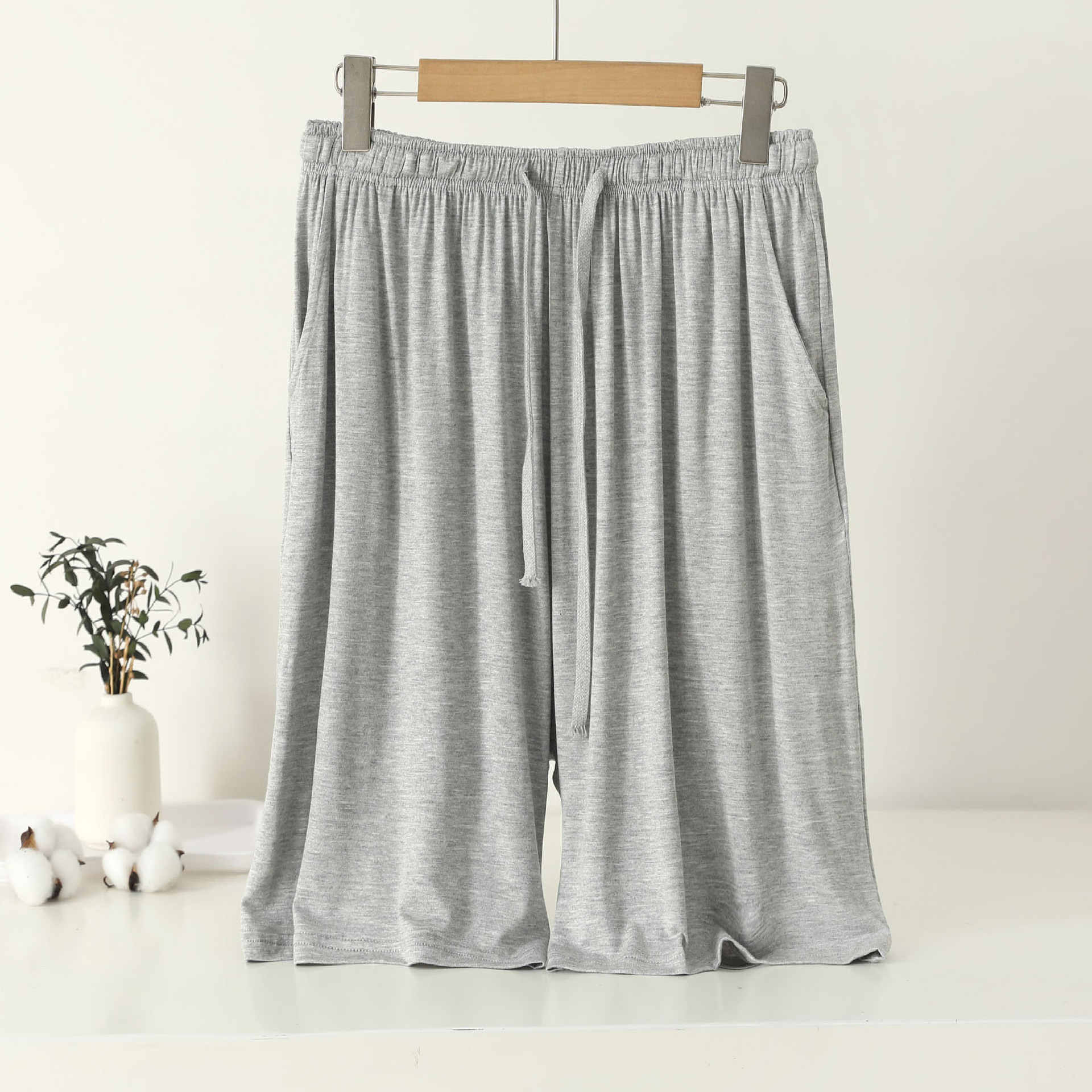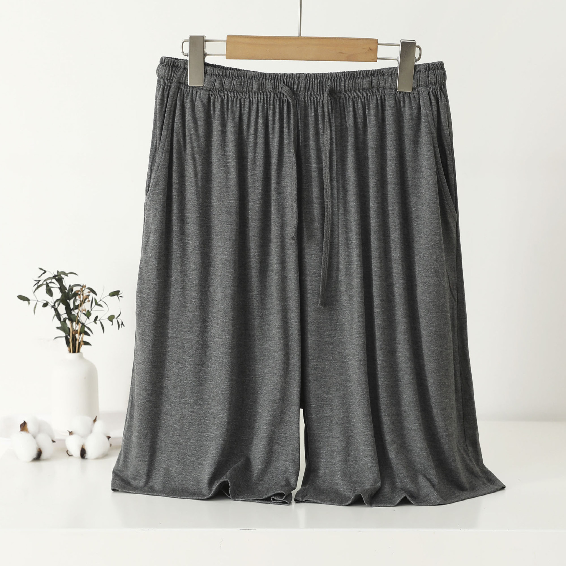 150kg 太った男性は家着のパンツを外で履くこともできます 中高年の父親向けの特大サイズのカジュアルな5分丈のパジャマ 夏用