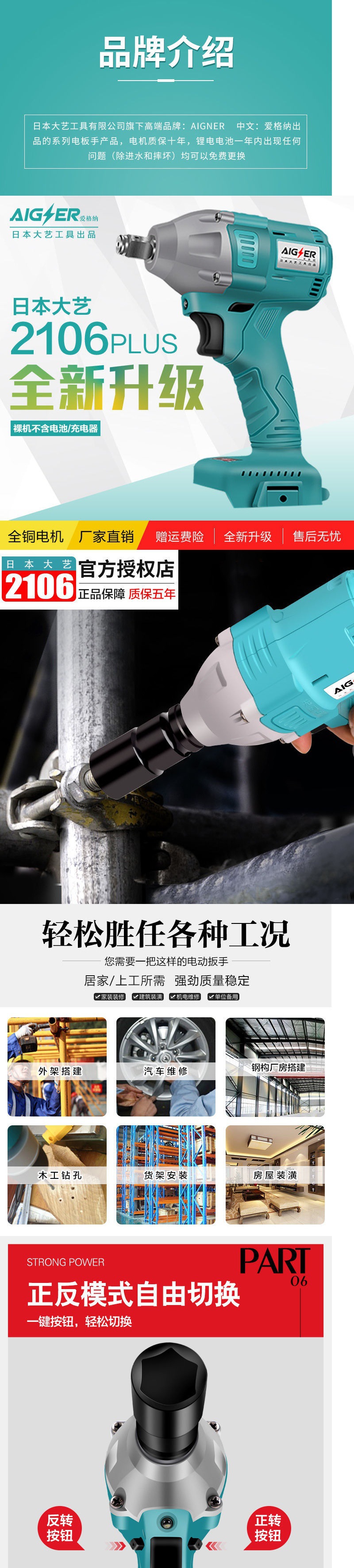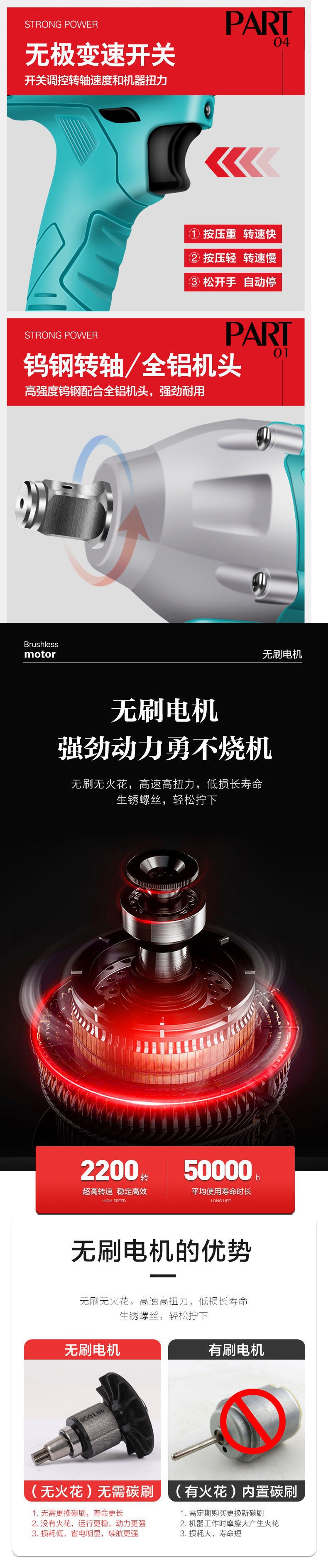 ブラシレス電動レンチリチウム電気充電レンチ大トルクインパクトレンチ大工角手架子工ベアヘッド