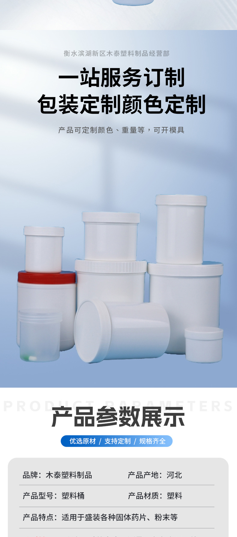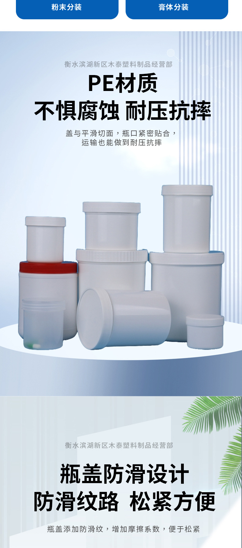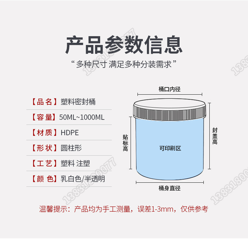メーカー在庫卸売200ml-500ml粉末バケツ広口密封包装PE粉末ボトル粉末プラスチックボトル