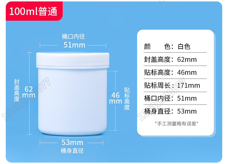 150g350g500gマスクペースト包装缶広口密封ペットボトル粉末ペットボトル日化バケツ