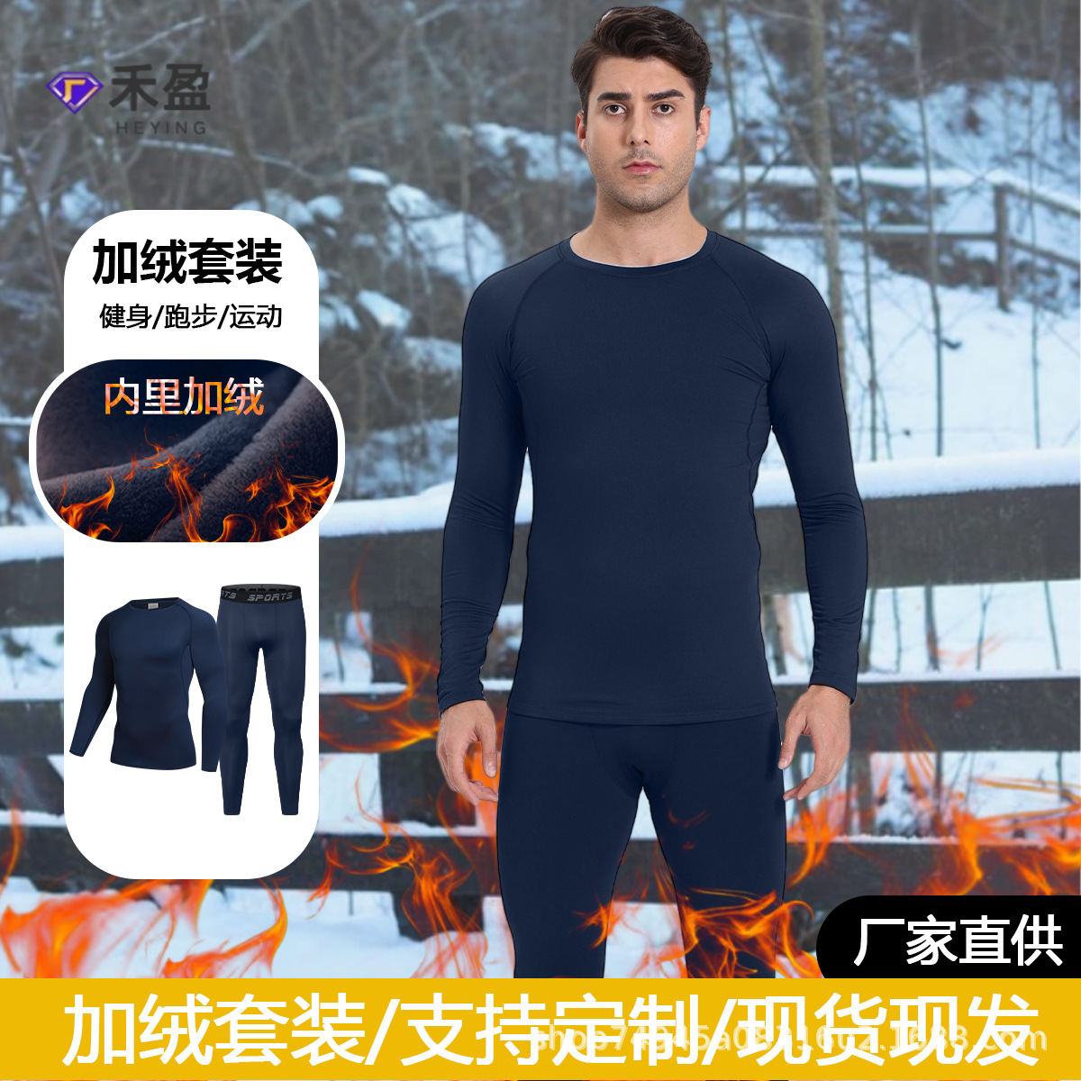 秋と冬のベルベットスポーツウェアスーツメンズアウトドアスキーランニング速乾性服タイトなフィットネスウェアベースレイヤーサーマル下着