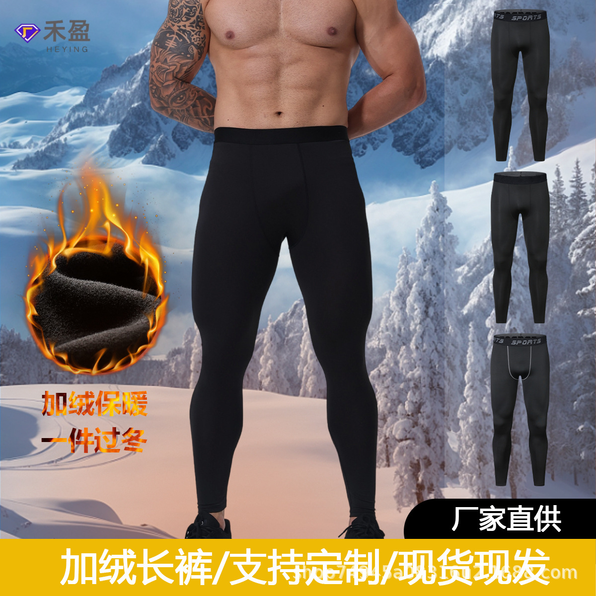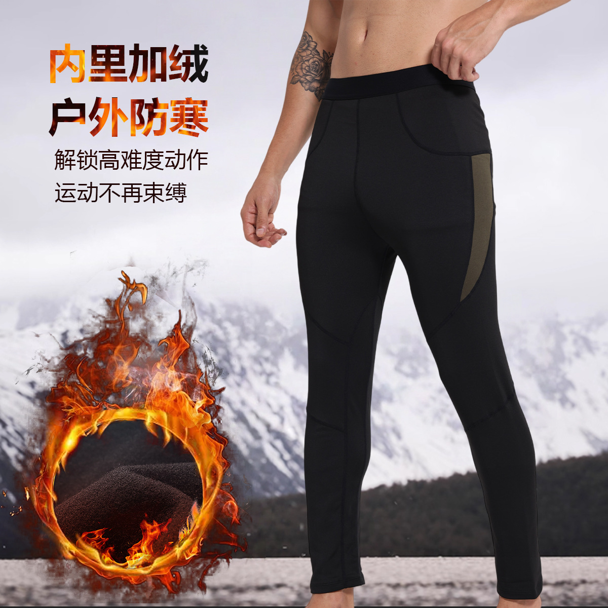 秋冬户外防寒加绒打底裤德绒保暖裤男加厚速干紧身跑步运动健身裤