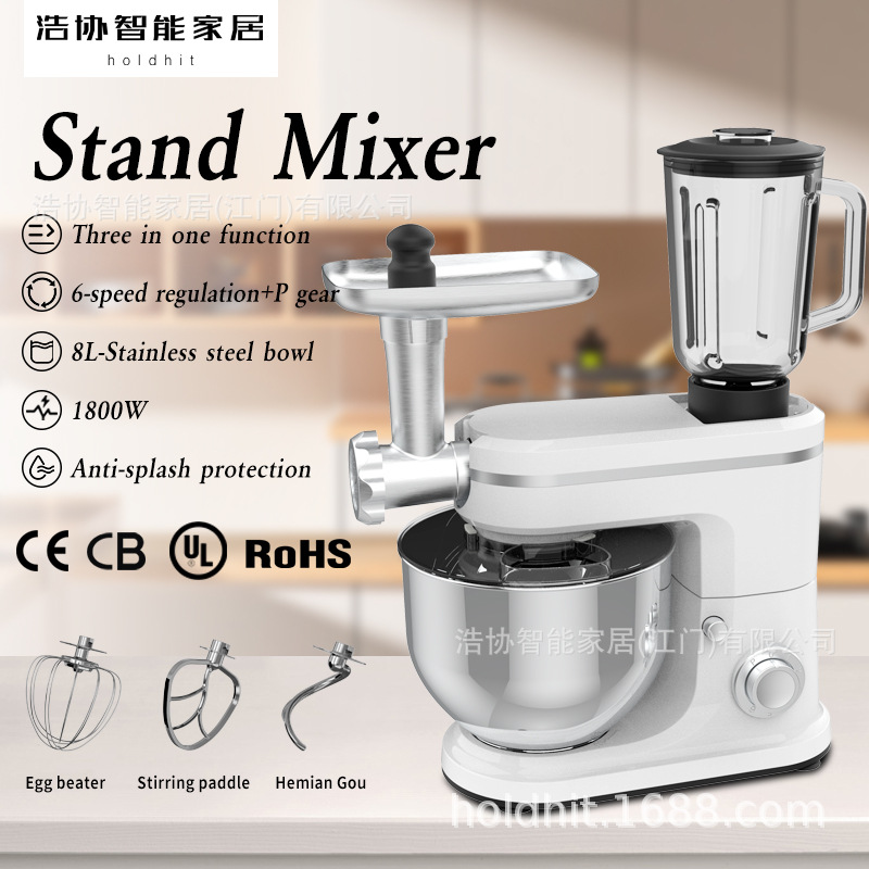 【輸出】8リットル多機能シェフマシン 家庭用生地捏ね機 ミキサー 卵白泡立て器 肉挽き機