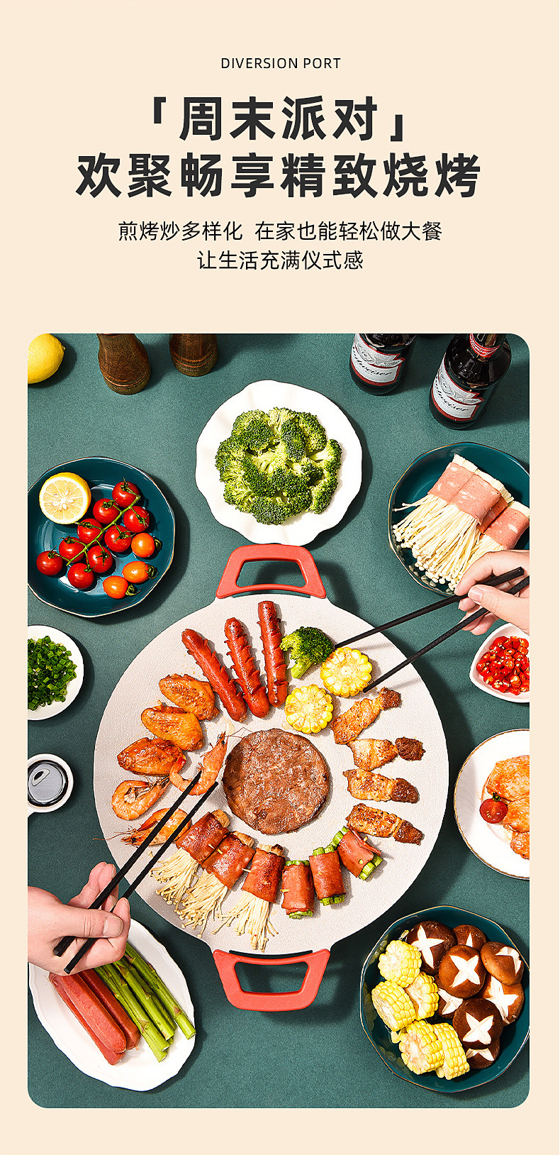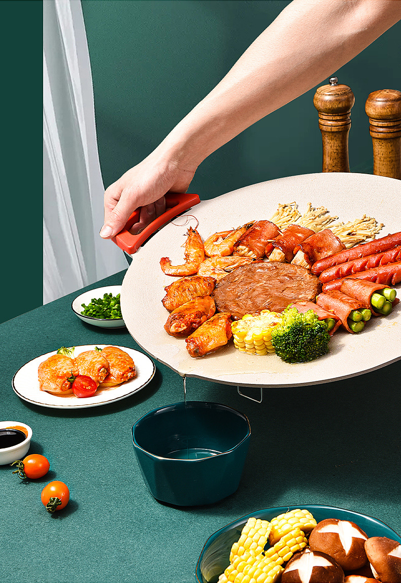 麦飯石焼き皿韓国式円形多機能焼肉皿家庭用焼き皿電気焼き皿焼肉鍋は鍋にくっつかない