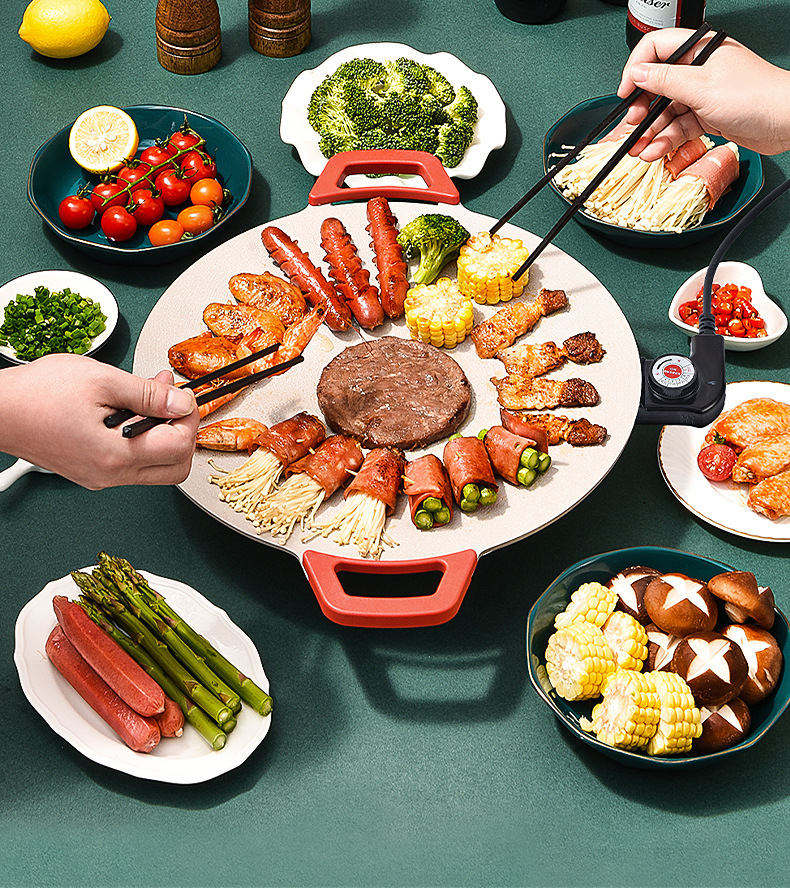 電気グリル多機能一体型フライパン麦飯石家庭用ノンスティック鍋無煙韓国風バーベキュー焼き肉鉄板