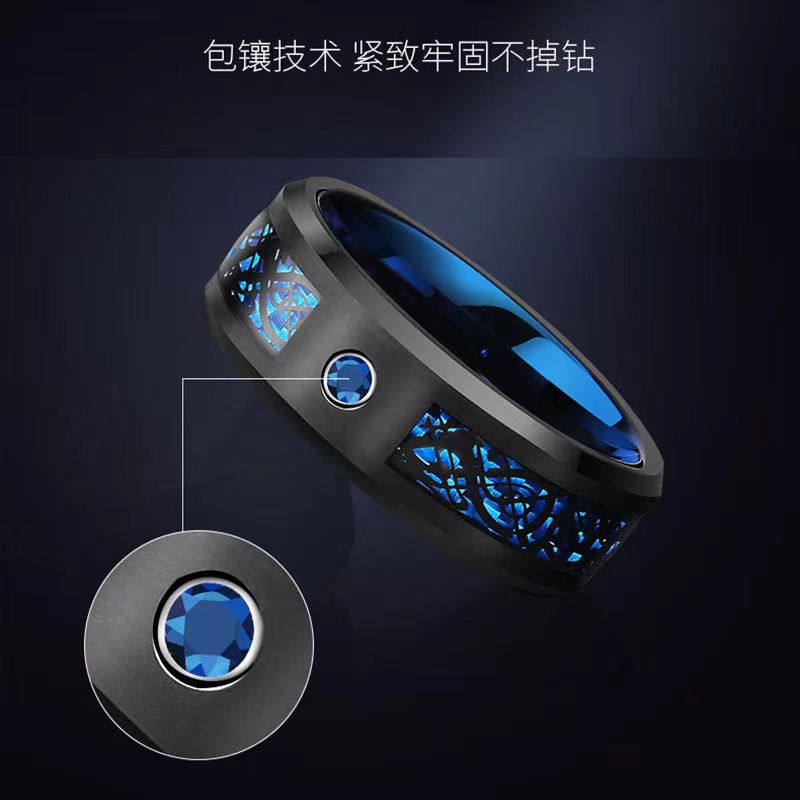 2023二色メッキ龍紋炭素繊維包入ドリルチタン鋼指輪クロスボーダー国内電気商プラットフォーム代理発行