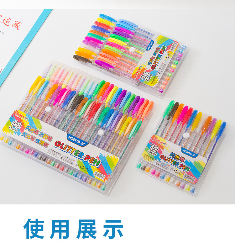 グリッターペン、ゲルペン、蛍光マーカーペン、学生ハンドブック、グリッターパウダー、グリッターサンド、真珠光沢のあるカラーゲルペン
