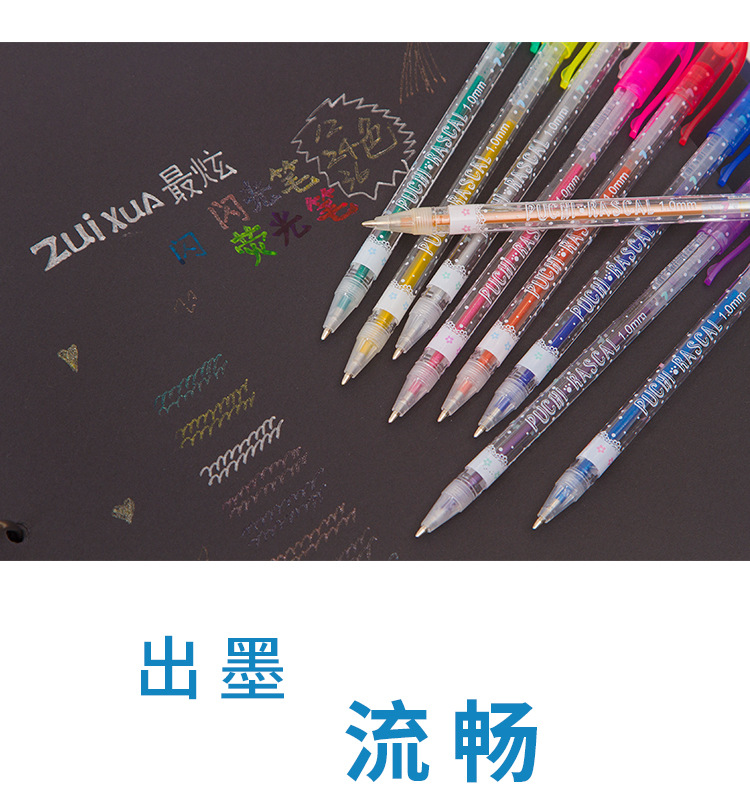 クロスボーダーフラッシュペンジェルペン蛍光マーク学生用手帳きらきら流砂パールカラー中性ペン