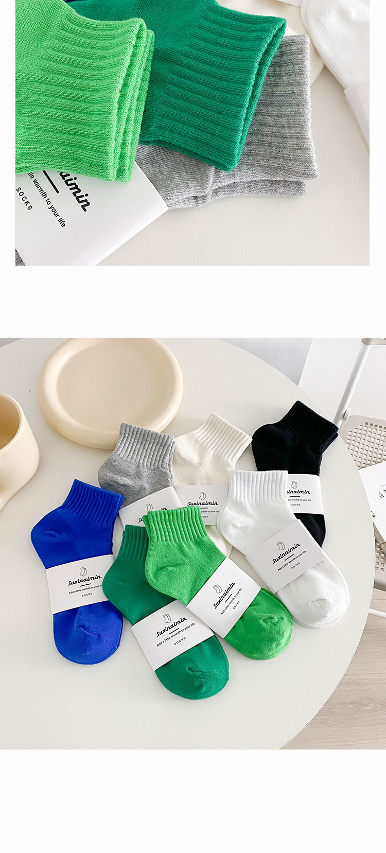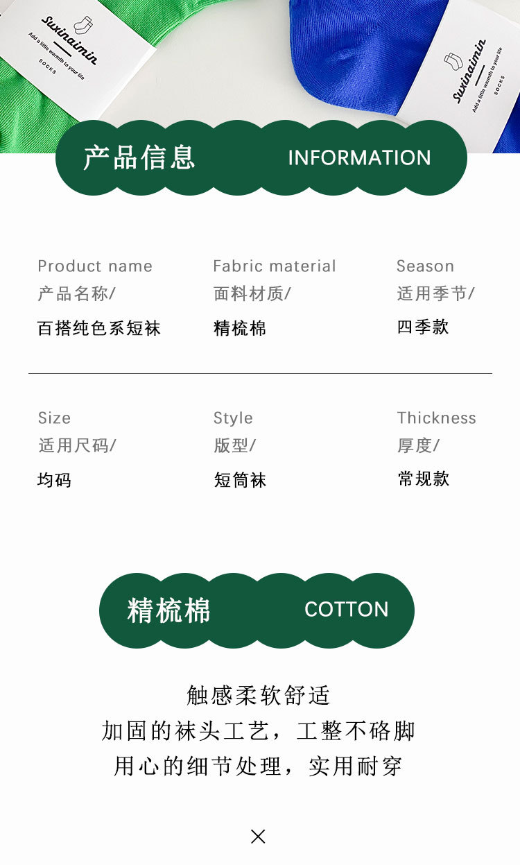 クラインブルーソックス女性ソックス夏の薄い純綿insファッショングリーンスポーツ春と秋の低いソックス