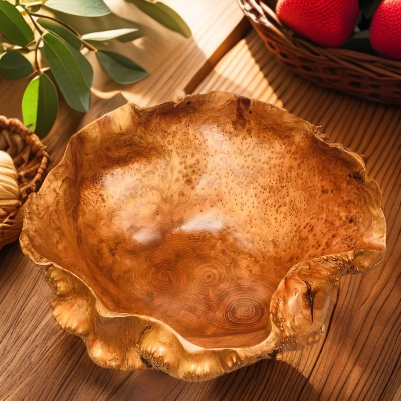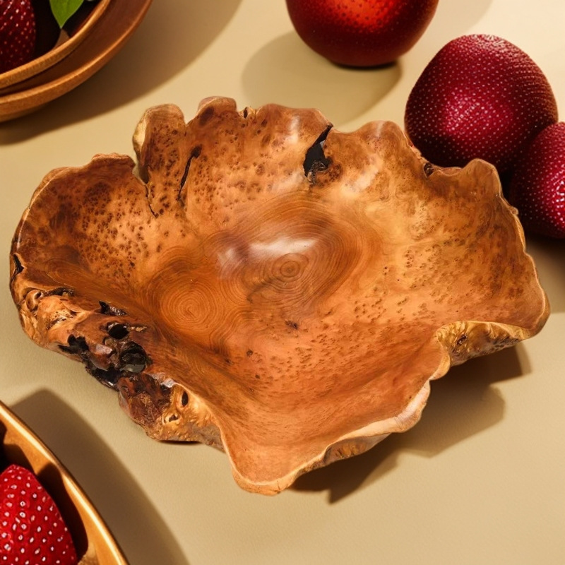 無垢材の根彫りフルーツプレート、天然木製トレイ、食器、軽贅沢でクリエイティブなパン・スナック入れ、フルーツ用軽贅沢レトロな容器