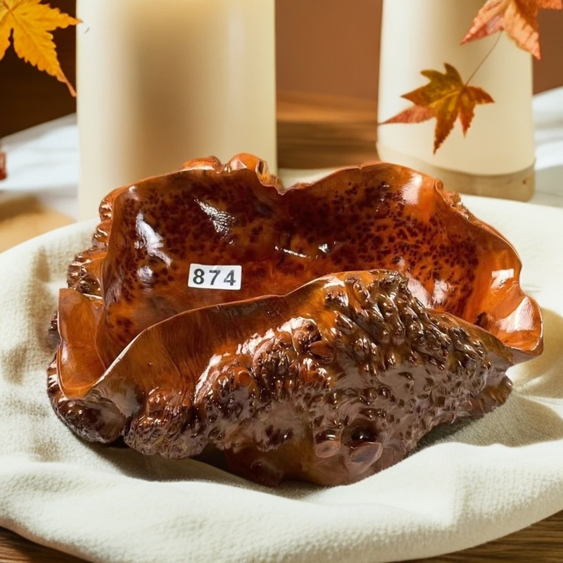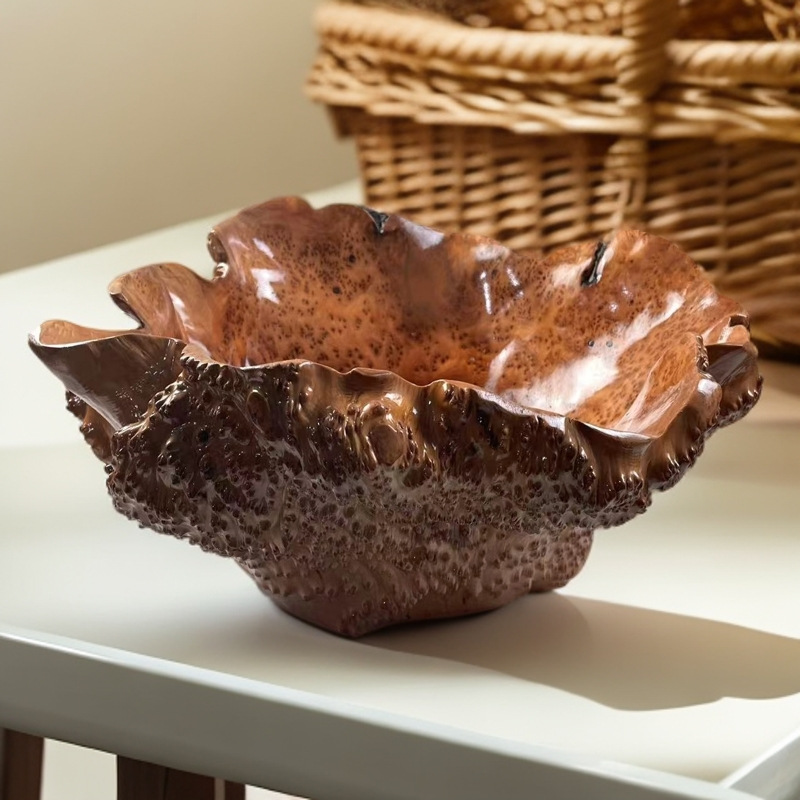 木製風フルーツボウル、落花生皿、ドライフルーツスナック皿、根彫りモダンスタイル皿、ナッツ皿、クリエイティブ