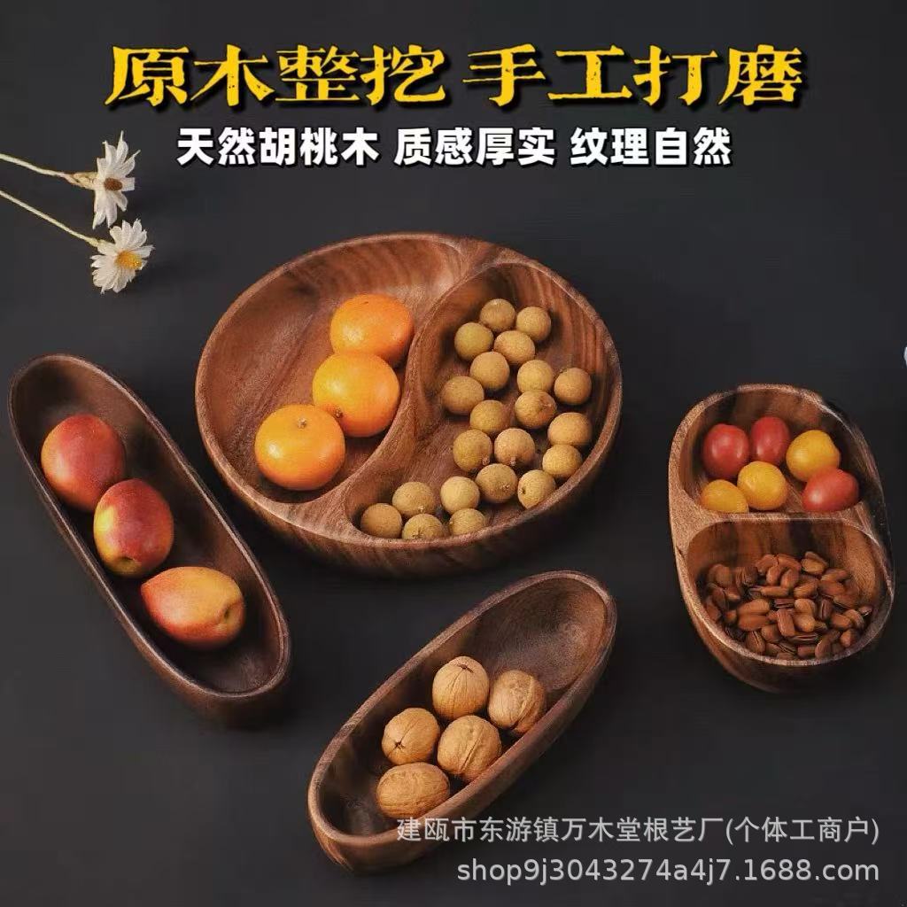 胡桃木时尚简约干果零食盘 酒店民宿使用居家
