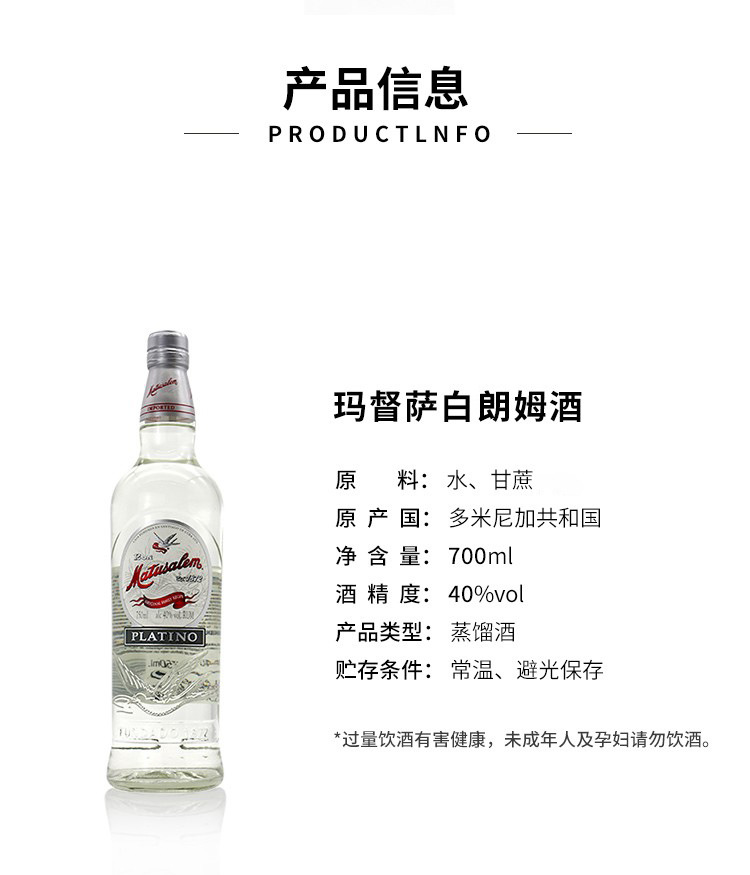 瑪督薩白ラム酒陳年750mlカクテルベース酒matusalem platino輸入洋酒