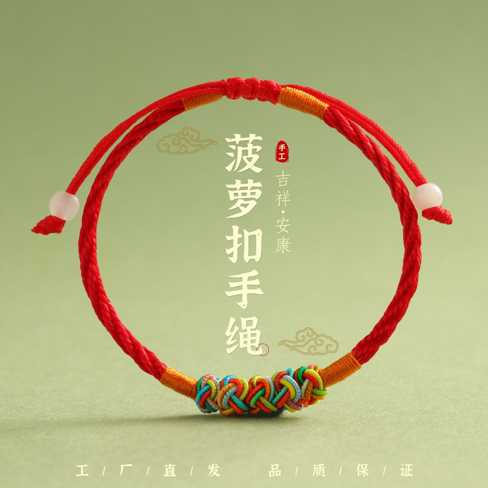 パイナップルバックル赤いロープブレスレット手織り端午節男性と女性の梅の花バックルロープロープカップル干支年ハンドロープ卸売