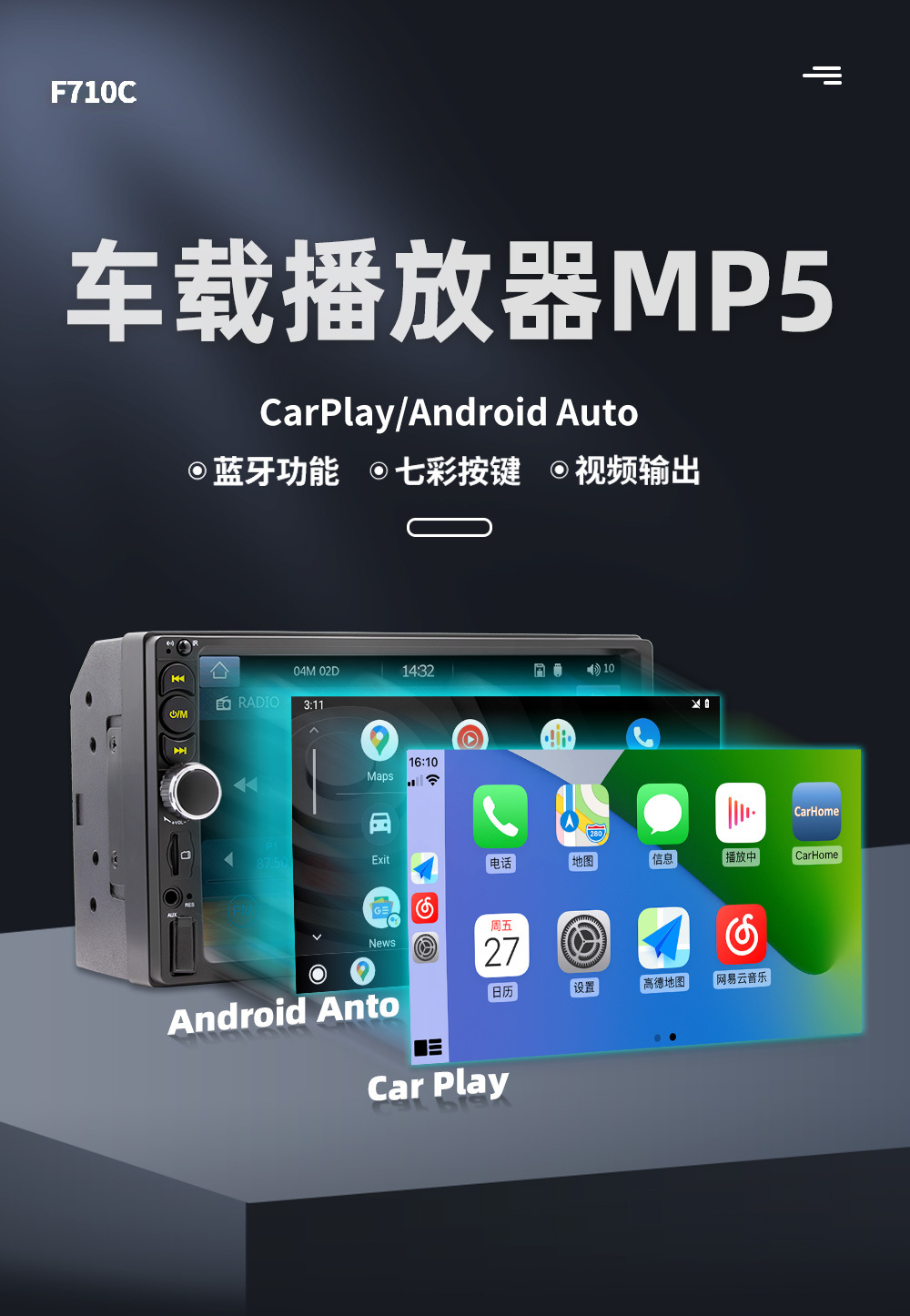 7寸双锭车载MP5播放器